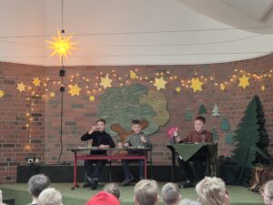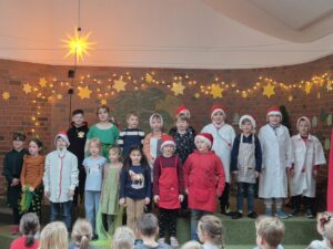 Anders als in den letzten Jahren fand unsere diesjährige Weihnachtsfeier im kleinen Rahmen statt. Ohne Eltern, allein die Kinder und Mitarbeiterinnen der Schule saßen im Forum und erfreuten sich an den einzelnen Darbietungen der Klassen. Jede Jahrgangsstufe hatte Beiträge vorbereitet: Lieder, Gedichte oder Sketche. Im Mittelpunkt stand wie in jedem Jahr das Weihnachtsstück der 2. Klasse. In gemütlicher Atmosphäre bei weihnachtlicher Dekoration konnten die Kinder ihre Ideen präsentieren und einander Applaus spenden. Zwischendurch wurden gemeinsam Weihnachtslieder gesungen. Die Nähe, die Ruhe und das Miteinander machten den Vormittag zu etwas ganz Besonderem. So verabschiedeten sich alle mit einem Lächeln und viel Vorfreude auf die Weihnachtsferien – und mit der Gewissheit, dass Gemeinschaft das schönste Geschenk ist.